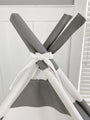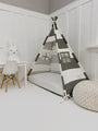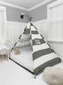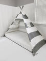 Made from soft gray and white wide stripe cotton canvas. The entire tent will be made in the same fabric.