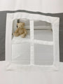 There are two reinforced windows on either end. Our unique play tent design will not slide down the poles. Comes in canvas drawstring carry bag.
