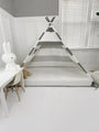 It's a play tent shaped canopy that fits over the top of your mattress on the floor. This is perfect for your toddler who is transitioning from being into a crib to a bed. It's also perfect if you don't have room for one of our free standing play tents. Our Play Tent Bed Canopy takes your mattress and turn it into a Montessori floor bed.