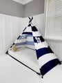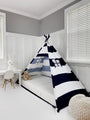 Play Tent Canopy Bed in Navy Blue and White Stripe Canvas