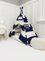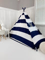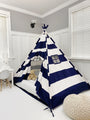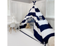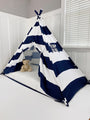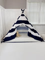 Play Tent Canopy Bed in Navy Blue and White Stripe Canvas WITH Doors