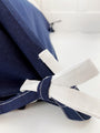 Made from cotton canvas in navy blue and white stripe. The entire tent will be made in the same cotton fabric.